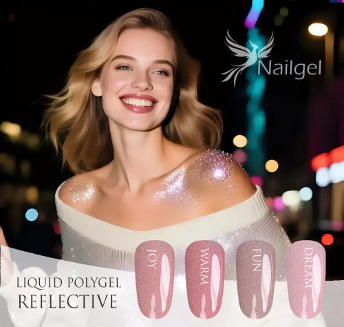 A népszerű Liquid Polygel most reflektív csillámokkal gazdagítva érkezik, négy már kedvelt természetes nude árnyalatban.