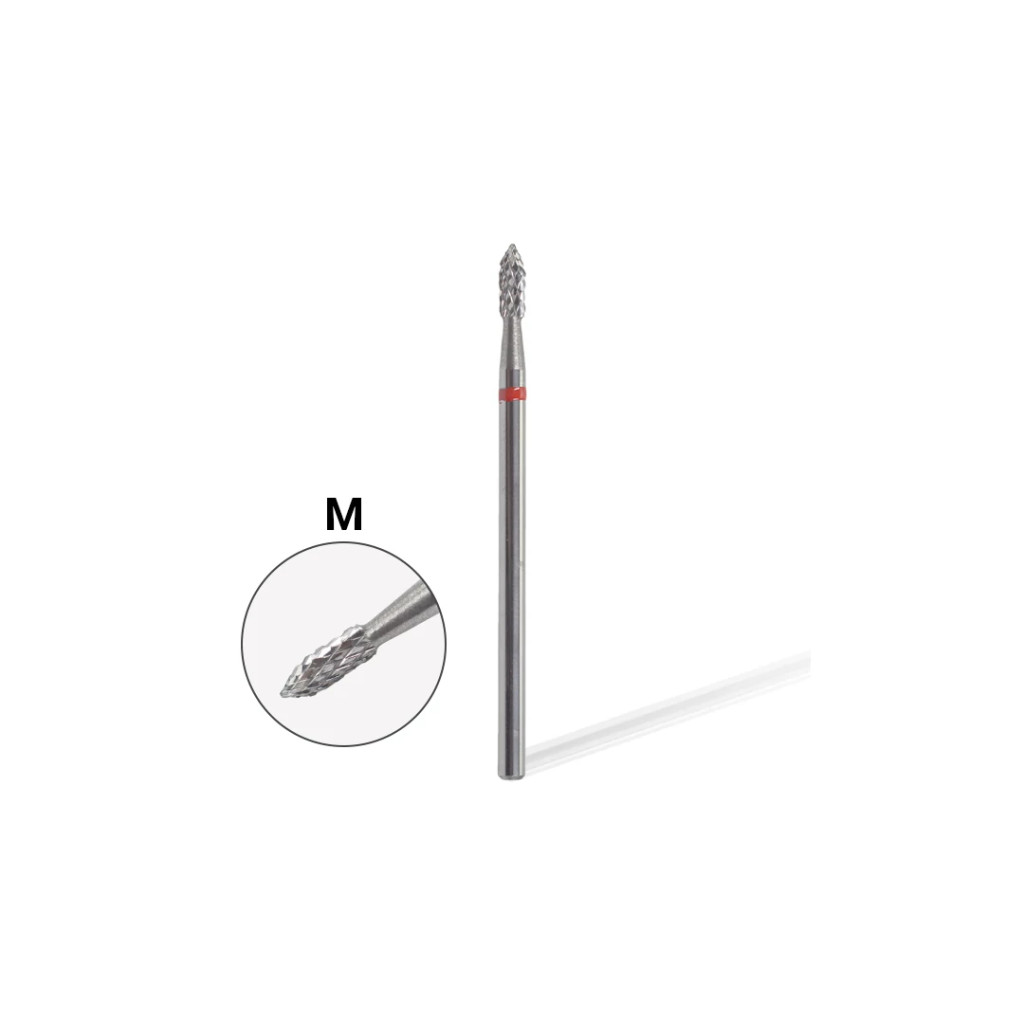 Karbid csiszolófej, közepes erősségű, hegyes kúp alakú. Gépi manikűrözés során a letapadt szarupárkány eltávolítására és tisztítására használjuk, vagy a köröm alulról való tisztításához. Ajánlott fordulatszám: 15-20.000, két irányba.