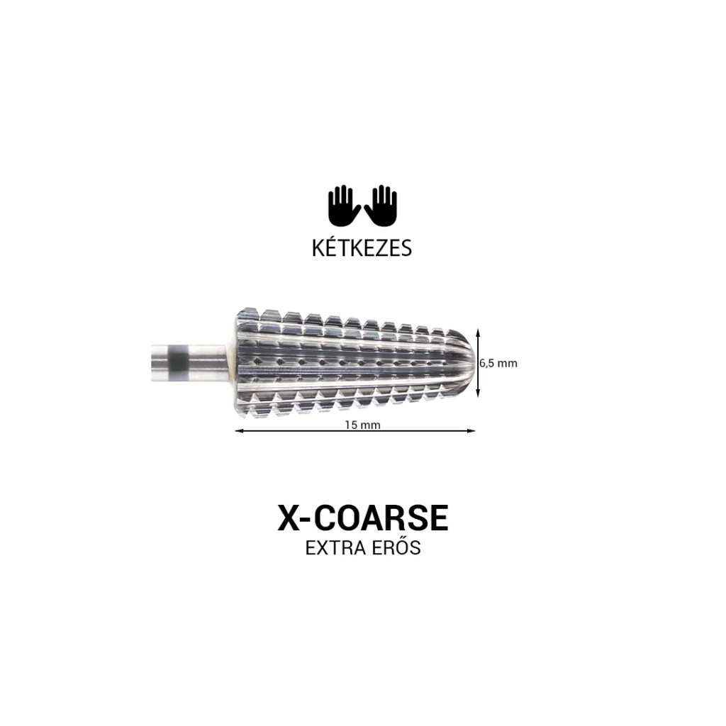 Speciális kúpos karbid műköröm csiszolófej XCoarse (extra erős) változatban.